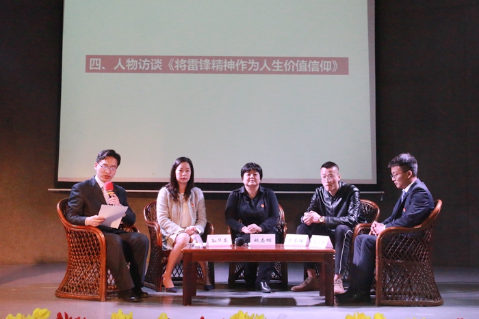团课解读了社会主义核心价值观和雷锋精神的内涵,回顾了机械学院共青团雷锋岗四大“品牌项目”—— 大学生村官挂职工程、抗洪救灾青年志愿服务、无偿献血志愿服务、为“小橘灯说法”关爱留守儿童社会公益志愿服务,通过文字、图片、数据、VCR视频短片等形式生动形象地展示了共青团雷锋队队员风采。团课对常州市中心血站献血服务科主任孙华英、天宁区雕庄街道朝阳村党总支书记姚志帼、2015年抗洪救灾青年志愿者突击队队长、学生党员、现南京农业大学硕士研究生封志祥、2016年挂职大学生村官、学生党员、原常州市天宁区雕庄街道团工委书记助理陈咨霖进行了人物访谈,提炼了“心存大爱,甘于奉献”的新时代雷锋精神,号召全院青年大学生投身社会实践,践行社会主义核心价值观和新时代雷锋精神,做到实现个人价值与实现中华民族伟大复兴的中国梦有机统一。最后,机械学院党总支书记王荣兴、学院团委副书记嵇天培分别为机械学院共青团雷锋岗和共青团雷锋队揭牌、授旗,共青团雷锋队全体成员集体重温了入队宣誓。