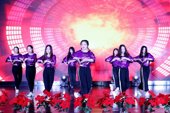 表彰大会上,学院领导及职能部门负责人、各二级学院的党总支书记分别为荣获国家奖学金、江苏省魅力团支书、活力团支部、江苏省“三下乡”社会实践活动先进个人、常州市“十佳百优”社团、院优秀团支部、优秀团干部、优秀团员、优秀青年志愿者、优秀社团、优秀社团干部、公寓管理优秀学生干部的集体及获得者代表颁奖。颁奖期间,学院社团也为观众带来了精彩纷呈的文艺节目。江苏省“百优社团”、艺术创意学院子衿汉服社带来富有古典汉文化特色的节目《华夏有衣》,带领大家领略中华传统文化之美;张贺贺、李芷钦同学带来的朗诵,让大家重温了九十九年前爱国青年的激昂斗志和理想信念;JY Dancer社团带来的《Crazy in love》舞动出青春的自信与激情;太极社、武术协会带来的《国武风》展现了中国功夫的独特魅力;最后,郑海涛、许凌敏带来的《年轻的战场》表达了新时代团员青年充满活力,为梦想奋斗的坚定信念。