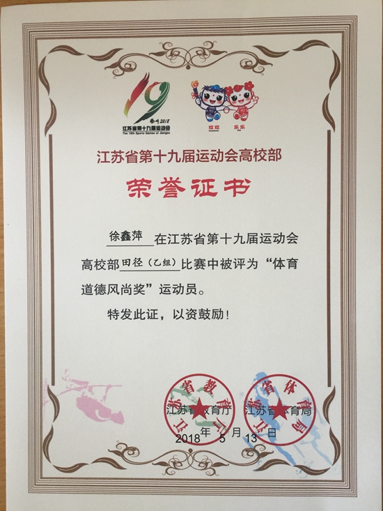 我院田径队由徐鑫萍、邓岚、冯方旭和索浩东四位同学组成,参加了本次比赛的女子组三级跳远、男子组跳高、女子组跳远、男子组400米跨栏等赛项。在教练员徐江波、杨文明的指导下,四位同学经过赛前长期的刻苦训练,在比赛中发扬永不服输的体育精神,不畏强手、顽强拼搏、敢于争先,充分发挥个人运动能力和技术水平,最终,徐鑫萍同学获女子组三级跳远第四名;冯方旭同学获男子组跳高第五名;徐鑫萍、邓岚同学分获女子组跳远第七名、第八名;其中,徐鑫萍同学被评为“体育道德风尚奖”运动员。