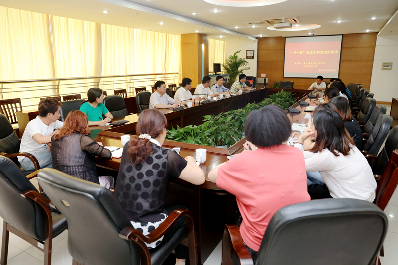 5月14日,学院国际交流合作处邀请常州市武进区委常委、副区长,江苏省法学会港澳台法律研究会副会长,东南大学法学院兼职硕士生导师钱文华来院做了一场题为“‘一带一路’倡议下相关政策解读”的专题讲座。讲座由学院副院长姚庆文主持,留学生教育与管理工作领导小组成员、留学生教学与管理人员、各二级学院外事联络员共同聆听了讲座。