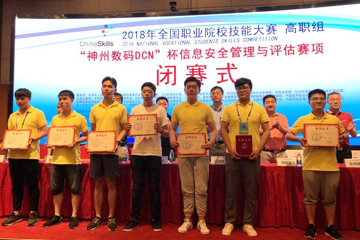 5月29日,2018年全国职业院校技能大赛“神州数码DCN”杯“信息安全管理与评估”赛项在福建平潭举行,我院代表队荣获三等奖。