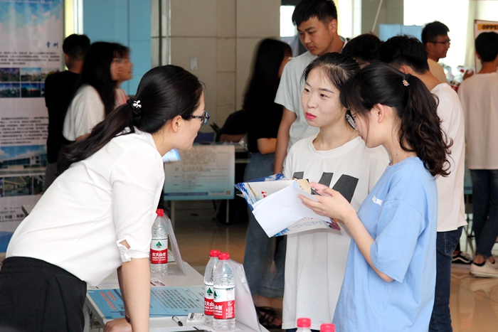 招聘会上,八个二级学院共两千余名学生前来应聘。学生和企业密切交流,通过递交简历、微信扫码、填表等方式建立联系,有相当一部分学生和用人单位达成了初步意向。