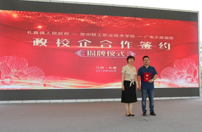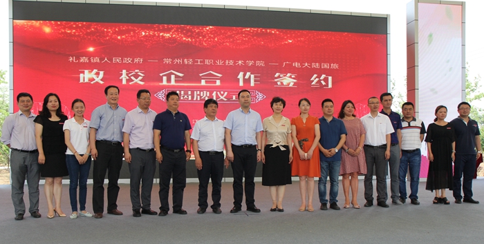 6月15日上午,“礼嘉—常州轻工职业技术学院—广电大陆”区域合作联盟成立暨政校企产教融合对接大会在嬉乐湾生态农业园举行。学院副院长蒋新萍、礼嘉镇人民政府镇长朱慧峰、广电大陆国际旅行社有限公司董事长陆传大出席大会。