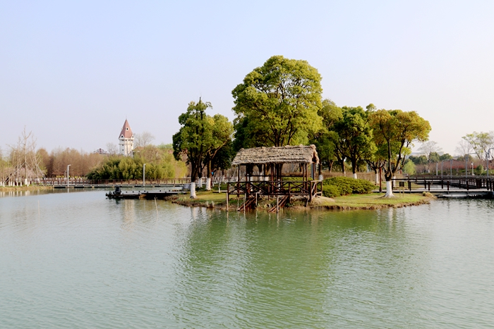 吴淞江在金晨家附近拐了一个弯。打的30元,我们来到了金晨家。