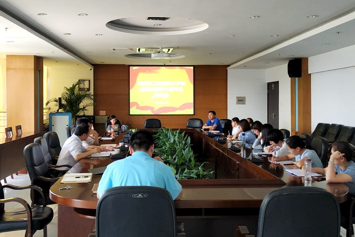 6月21日,我院举行2018年江苏省信息化教学大赛赛前研讨会。学院副院长姚庆文、教务处副处长潘安霞和全体参赛教师参加了会议。会议由教务处副处长滕业方主持。