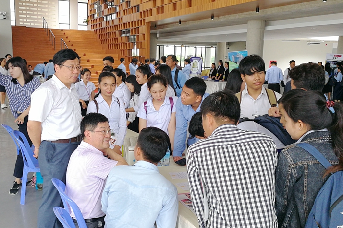 在柬埔寨访问期间,缪昌武拜见了柬埔寨副首相、柬中友好协会主席,并合影留念。与柬埔寨因塔维杰大学就双方师资交流、留学生培养、合作办学等方面进行了商谈,并签署了合作备忘录。缪昌武还与柬埔寨教育部和劳动部官员会谈,为积极响应国家“一带一路”倡议,加强两国职业教育的合作,提升两国职业教育人才培养的层次,达成共识,为进一步合作奠定了良好的基础。在“留学中国”招生现场,缪昌武介绍我院办学特色及留学轻工学院的优势,深受学生和家长的好评。