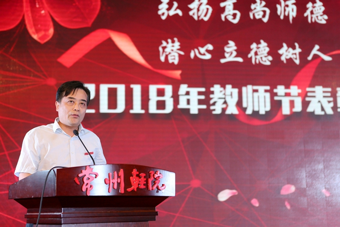 颁奖典礼现场,已走上工作岗位的学生们为在教育战线工作满30年的老师送来了祝福。江苏省五一劳动奖章获得者、江苏省优秀教育工作者、金牌教练韩迎辉老师带领新教师宣誓《教师誓词》。在颁奖间隙,学院团委和有关二级学院的师生表演了精彩的文艺节目。