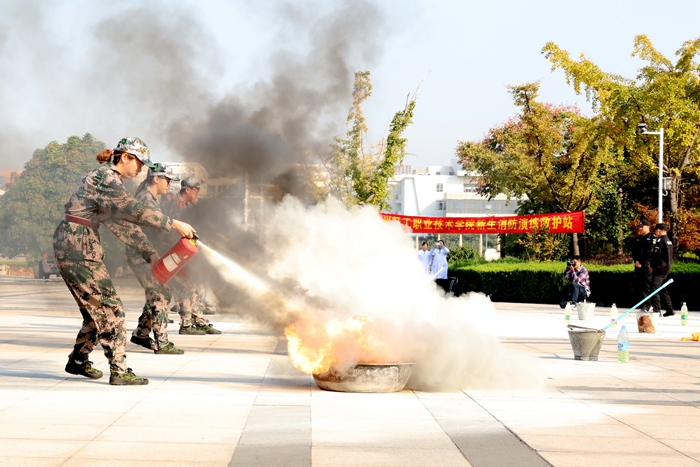 为进一步增强新生消防安全意识,切实提升新生防火御火能力,落实省教育厅的“消防进军训”重要指示,10月30日上午,在学生公寓及北广场举行了2018级新生消防实战演练。