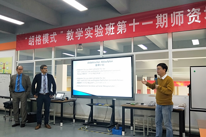 10月29日,学院举行第十一期中德“胡格教学模式”师资培训班开班仪式。来自德国“胡格教学模式”团队的托马斯、帝莫、朱佳老师为山东职业学院、黄河水利职业技术学院、常州机电职业技术学院、江苏信息职业技术学院、常州工业职业技术学院5所国内职业院校共计30余名教师开展胡格教学模式培训。电气工程与技术学院与机械工程与技术学院相关领导与部分教师出席了此次开班仪式。