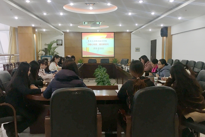 12月7日下午,我院召开“巾帼心向党,建功新时代”师生交流会。宣传部部长张燏、工会副主席陈文蕾、团委副书记嵇天培及各分工会女工委员、各二级学院女生代表参加了会议。