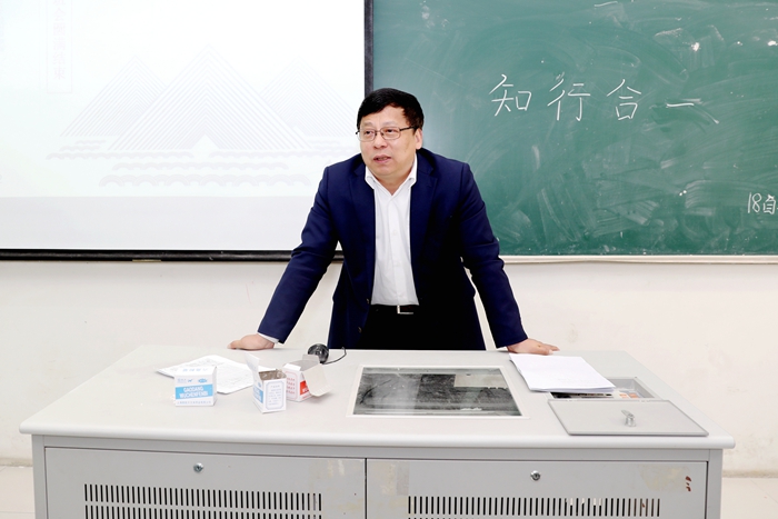 本次班会课的主题是“知行合一”,班长从中华传统美德中的仁义礼智信方面谈起,重点和同学们分析了知行合一在学习、实训、实践、实习中的重要性,大家一起探讨了新时代青年如何做到以行求知、以知促行、知行合一。缪昌武在主题班会课上,用他的生活、求学经历激励学生,做有理想、有目标、有追求的人。他希望大家在这个幸福的新时代里,在大学校园里,珍惜时间,不负青春,每天都要像海绵吸水一样,不断吸收营养,不断读书充电,心无旁骛地好好学习,向我校优秀毕业生邓建军一样,将来成为单位的技术能手,国家的大国工匠,为社会作贡献。最后,缪昌武还把自己的手机号码写在黑板上,希望和学生们多沟通、多交流,成为学生们的朋友,和学生们教学相长、共同进步。