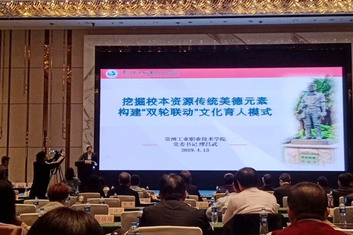 我校“双轮联动”的文化育人模式得到了与会嘉宾的高度认可,主持会议的中国职业教育学会高职分会副会长、重庆工业职业技术学院党委书记王官成在总结时表示:“常州工业职业技术学院深入挖掘和阐发了中华传统美德的时代价值,讲好两个故事,形成了‘双轮联动’的文化育人模式,夯实了高职人才培养的‘固本工程’、‘底色工程’、‘铸魂工程’,更是落实‘立德树人’根本任务,传承好和发展好中华传统美德的高职院校典型。”