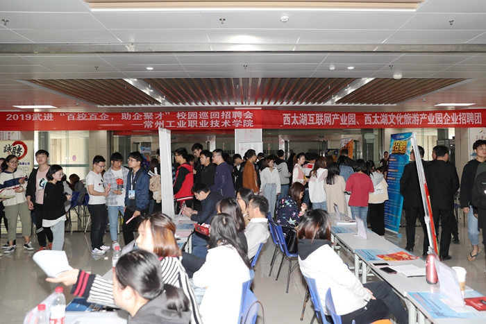 为促进毕业生更充分、更高质量精准就业,5月8日下午,我校联合无锡人力资源市场、武进人力资源市场、西太湖互联网产业园和西太湖文化旅游产业园举办2019年合作区域企业专场招聘会。