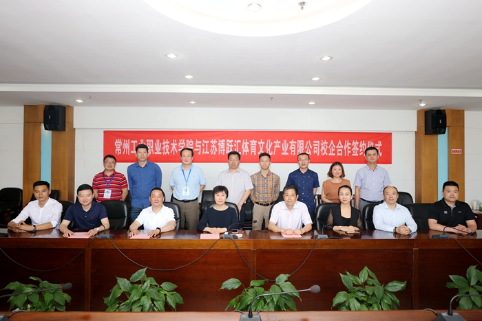 5月23日,我校与江苏博跃汇体育文化产业有限公司举行校企合作签约仪式。副校长蒋新萍出席会议并讲话。常州市政协副主席、民革常州市委主委卢明康,江苏博跃汇体育文化产业有限公司董事长巢旭,常州市健身健美运动协会会长张国峰,常州市跆拳道运动协会副会长金炜盛、陈百赏,常州宸雄跆拳道馆馆长吕宸瀚等与我校校企合作处处长褚守云,旅游与烹饪学院党总支书记高振发,体育部主任季华等相关人员参加会议。仪式由旅游与烹饪学院院长邢凯岭主持。