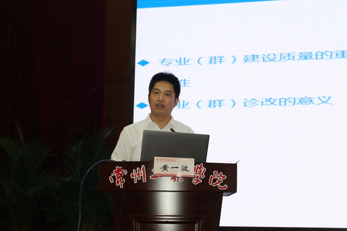 5月29日下午,我校邀请常州工程职业技术学院黄一波博士为全体教师作了一场题为“专业及课程诊改的思考与实践”的讲座。党委副书记、校长杨劲松出席并讲话。教务处处长潘安霞主持会议。