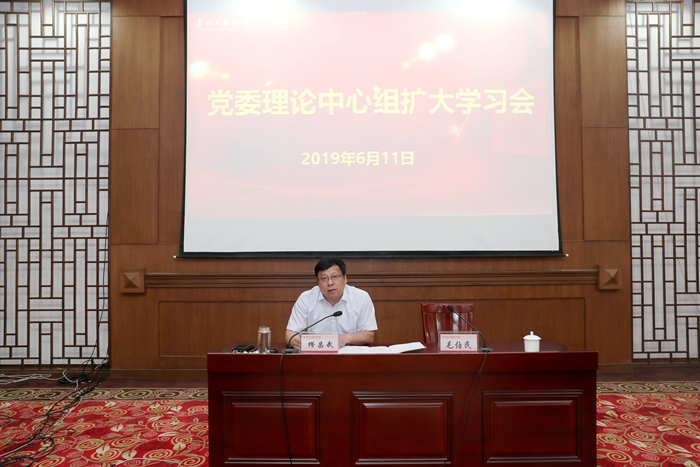 6月11日,我校党委理论学习中心组召开扩大学习会议,传达学习习近平总书记在“不忘初心、牢记使命”主题教育工作会议上的重要讲话精神和省委书记娄勤俭在江苏省“不忘初心、牢记使命”主题教育动员会议上的讲话要求。全体校领导和中层干部参加了本次学习会,会议由校党委副书记毛伯民主持。