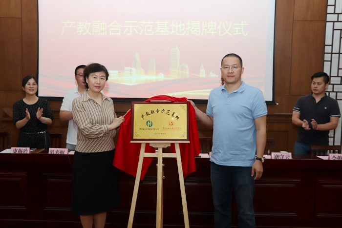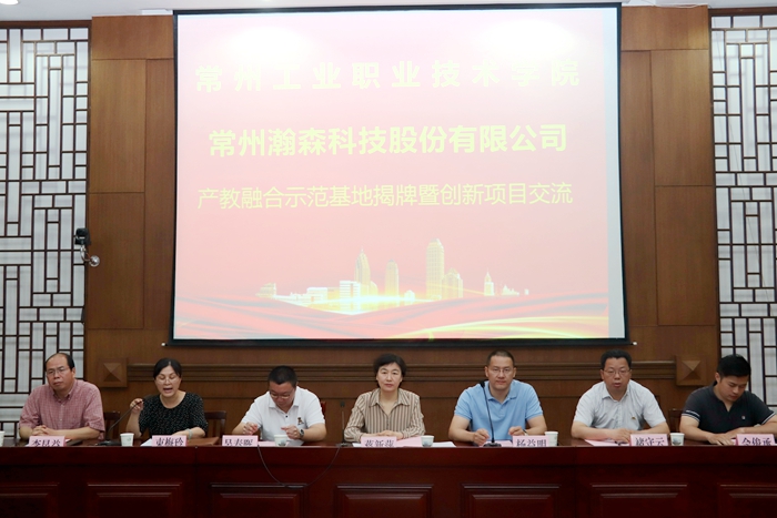 6月26日上午,我校与常州瀚森科技股份有限公司举行产教融合示范基地揭牌仪式。学校副校长蒋新萍、校企合作处处长褚守云、素质教育与创新创业学院副院长李昆益、基地负责人丁辉、常州瀚森科技股份有限公司总经理杨益明、瀚森科技CIO/CTO吴春晖、副总经理佘承俊以及学校相关师生参加会议。会议由信息工程与技术学院院长束梅玲主持。