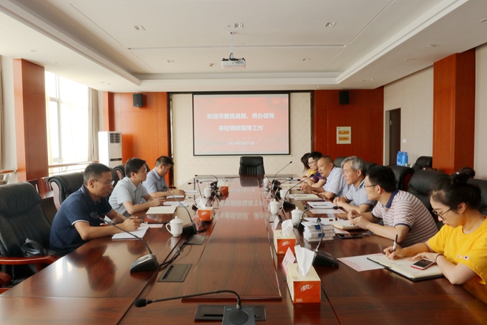 6月27日下午,市委统战部、侨办副主任邹源,侨务综合处处长陈伟杰、副处长倪锋一行来我校调研指导侨务工作。学校党委副书记毛伯民陪同调研,调研会由党委委员、统战部部长刘建明主持。