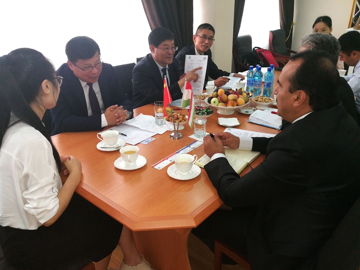 缪昌武一行先后访问了塔吉克斯坦科技大学、塔吉克斯坦民族大学孔子学院、塔吉克斯坦工业部、教育部和中国驻塔吉克斯坦大使馆,并与驻塔中资企业代表、卡弗拉特高中进行了深入交流。缪昌武一行受到了塔吉克斯坦科技大学校长阿蒙佐达・伊尔霍姆・特穆尔、塔吉克斯坦民族大学孔子学院塔方院长卡斯莫夫・法鲁赫、塔吉克斯坦工业部第一副部长鲁斯塔米・索迪乔恩、塔吉克斯坦教育部第一副部长乌斯蒙佐达・法希丁、卡弗拉特高中董事长伊索夫・伊斯马图罗・贾博罗特、中国驻塔大使馆政务参赞陈代文等人的热情接待。