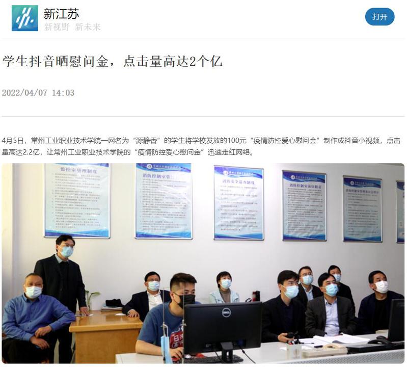 新江苏-学生抖音晒慰问金,点击量高达2个亿