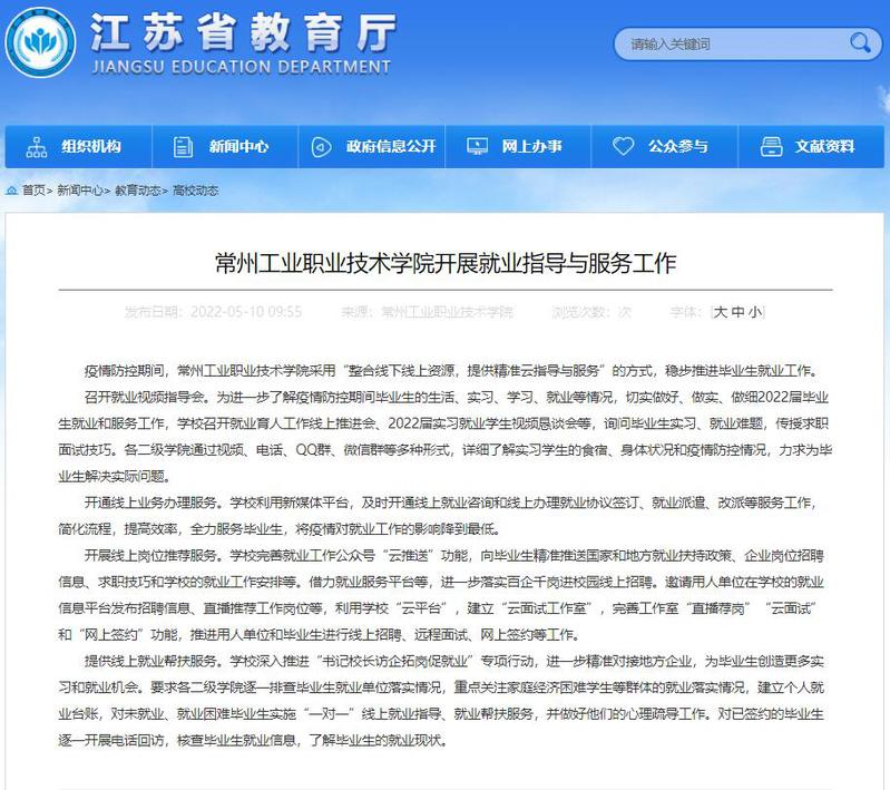 江苏省教育厅-常州工业职业技术学院开展就业指导与服务工作