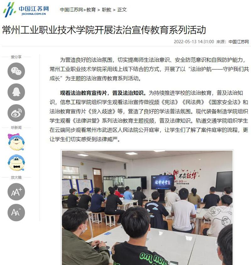 中国江苏网-常州工业职业技术学院开展法治宣传教育系列活动