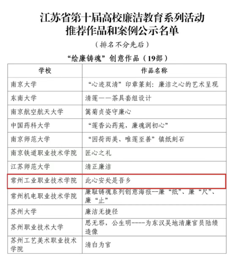 近日,从江苏省第十届高校廉洁教育系列活动传来喜讯,由我校党委宣传部选送,金坛刻纸传承人、艺术创意学院教师李斌创作的作品《此心安处是吾乡》成功入选,并被推荐至教育部参加全国展示。