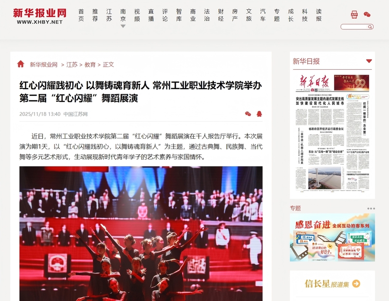 新华报业网:红心闪耀践初心 以舞铸魂育新人 常州工业职业技术学院举办第二届“红心闪耀”舞蹈展演