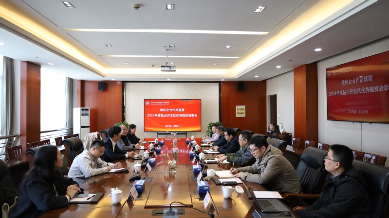 会议伊始,檀祝平代表我校对昆山代表团表示热烈欢迎。他简要介绍了学校的办学特色与发展成就,并表示期待通过与昆山开发区及龙头企业的深度合作,共同探索高素质技术技能人才培养的新模式。
