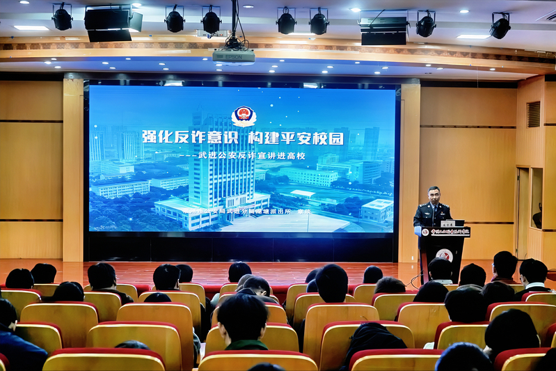 席海涛指出,近年来,我校与武进公安分局的合作日益深化,从签约成为武进区“反诈红盟”成员单位,到与武进公安共同打造“警校平安联盟”,设立“金盾护航工作室”,再到共建“武进辅警学院”,合作领域不断拓展、协作层次持续提升,逐步构建起“资源共享、责任共担、优势互补、协同发力”的校地安全合作新格局。如今双方联合组建“金盾反诈”先锋宣讲团,既是对过往合作成果的深化延续,更是“大安全”理念下校地协同育人的创新实践,将反诈宣传、安全科普融入校园育人全过程,不仅为师生搭建起更具针对性、实效性的安全防护平台,也为校地联动破解校园安全难题、筑牢全域安全屏障注入了更加专业、更加强劲的动力。