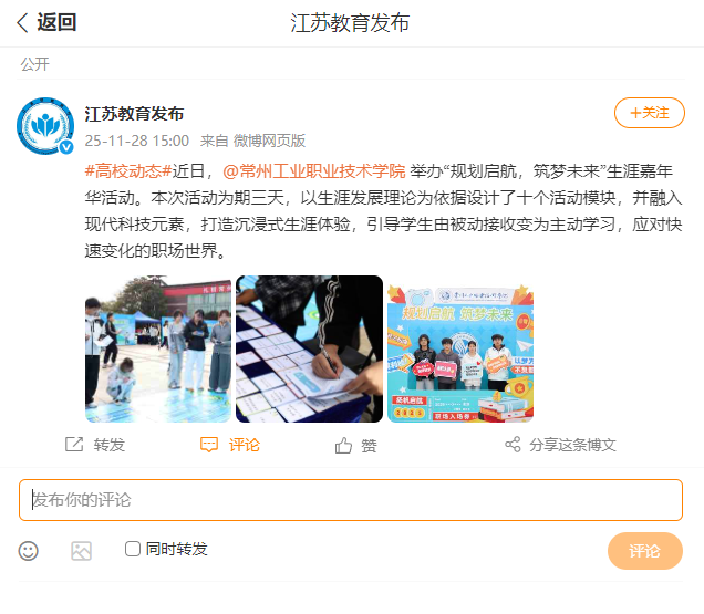 江苏教育发布:#高校动态#常州工业职业技术学院举办生涯嘉年华活动