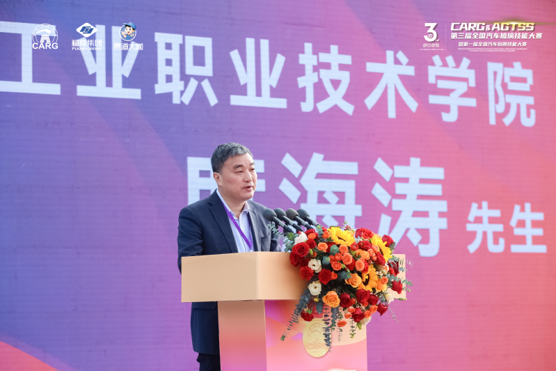 11月28日,应福耀集团邀请,我校党委书记席海涛、副校长檀祝平带队出席2025全国CARG&AGTSS汽车玻璃技能大赛暨第一届全国汽车贴膜技能大赛总决赛。