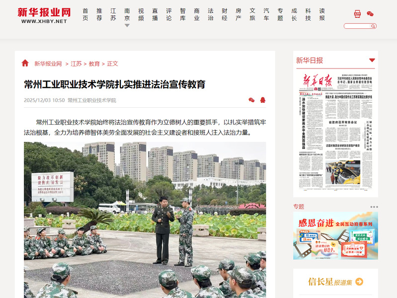 新华报业网:常州工业职业技术学院扎实推进法治宣传教育