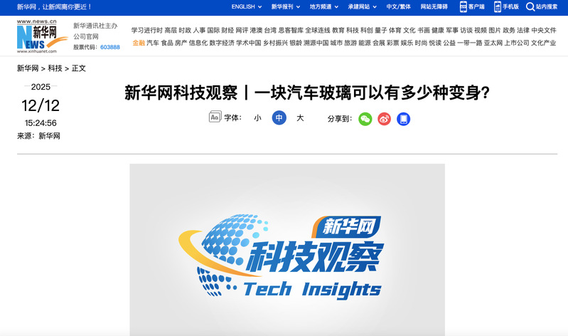 新华网:新华网科技观察丨一块汽车玻璃可以有多少种变身?