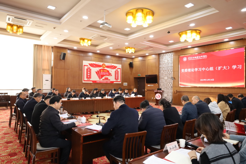 12月18日,我校组织召开党委理论学习中心组(扩大)集体学习会,专题学习习近平法治思想。学校党委理论学习中心组全体成员参加学习,会议由党委书记席海涛主持。