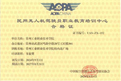 学院已获批“民用无人机驾驶员培训点”、“江苏省中小学生职业体验中心”、“常州市科普基地”及“江苏省退役军人无人机项目培训基地”、人力资源与社会保障厅的“无人机驾驶员”和“无人机测绘操控员”的培训和考证等多项资质,为学生提供了优越的学习平台与权威的认证通道。