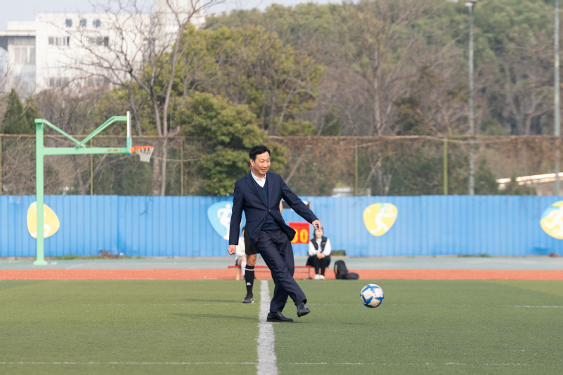 开幕式结束后,备受瞩目的师生友谊赛随即打响。副校长姚庆文为比赛开球。