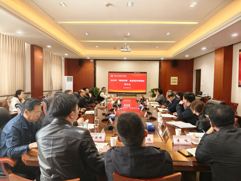 3月27日,我校组织召开2026年“揭榜挂帅”高质量发展指标研讨会。全体在校校领导、各高质量发展指标申报部门负责人参会。会议由高水平建设办公室主任胡彩霞主持。