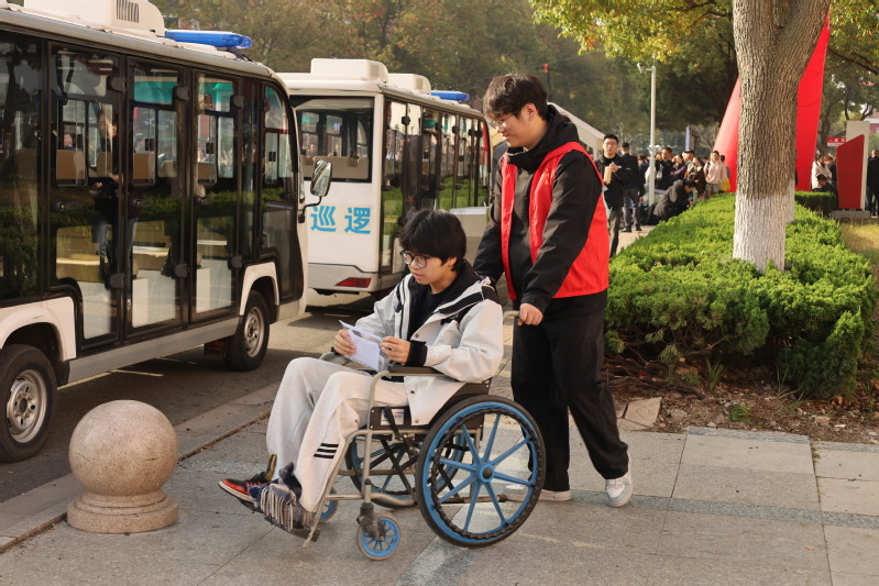 校园里,师生志愿者们的身影格外亮眼,成为本次校测中最温暖的风景线。他们分散在校园入口、安检通道、咨询处等各个岗位,耐心细致地为学生和家长指引行进方向,解答关于考场位置、考试流程、校园服务等各类疑问。他们以热情洋溢的笑容、细致周到的服务,为每一位考生和家长送上温暖与安心,用志愿力量,护航梦想前行。