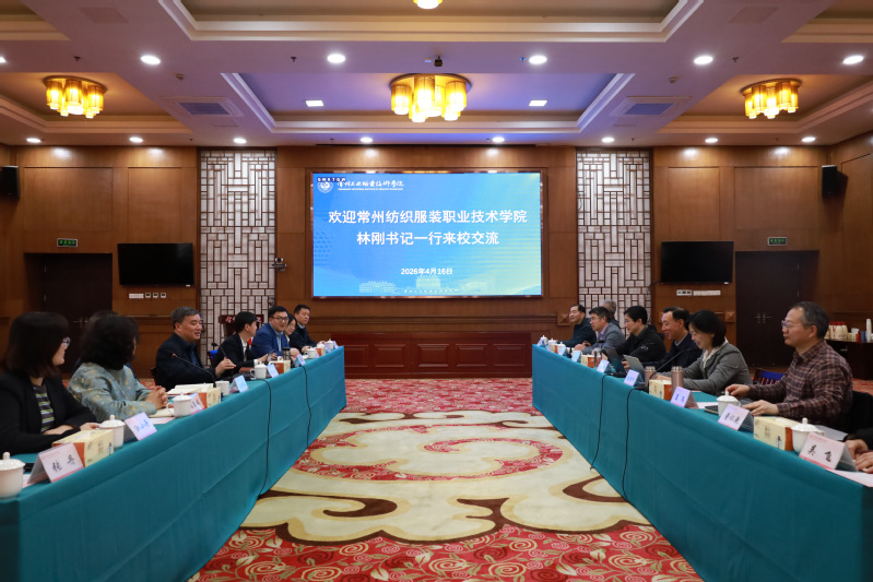 4月16日,常州纺织服装职业技术学院党委书记林刚、党委副书记张雪华率队莅临我校交流,共话职业教育发展。我校党委书记席海涛、党委副书记吴丽云热情接待。