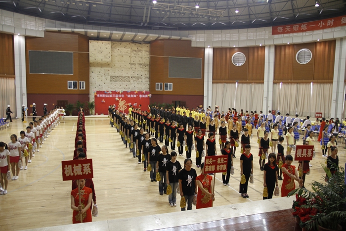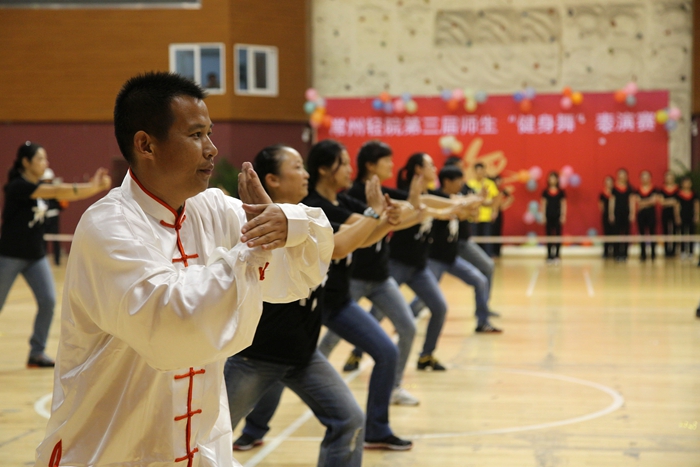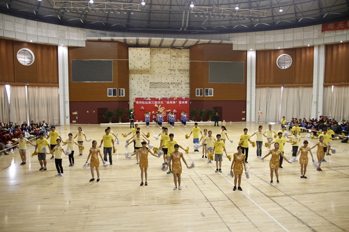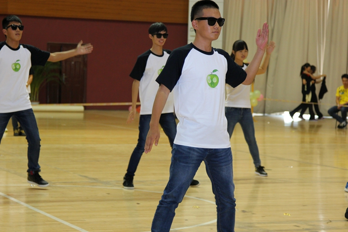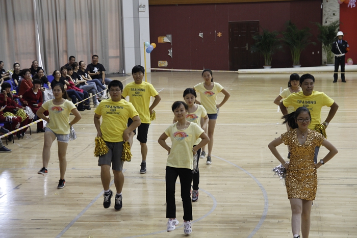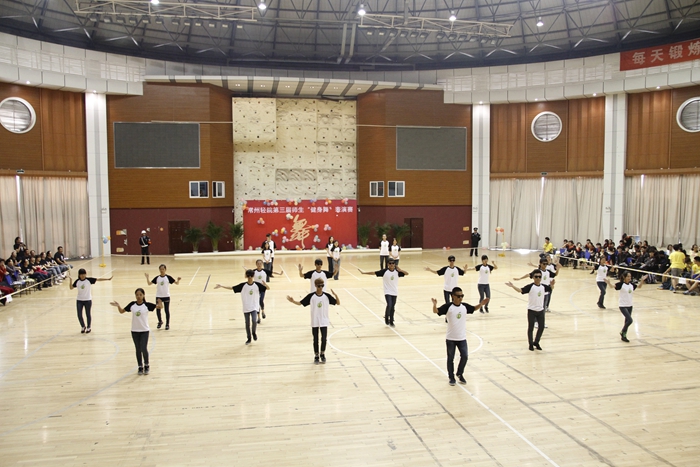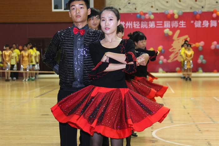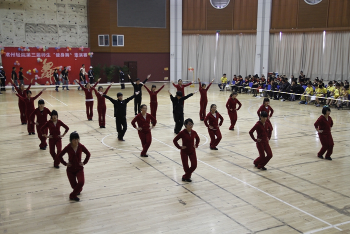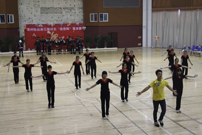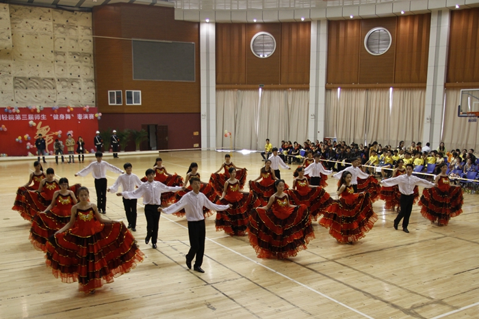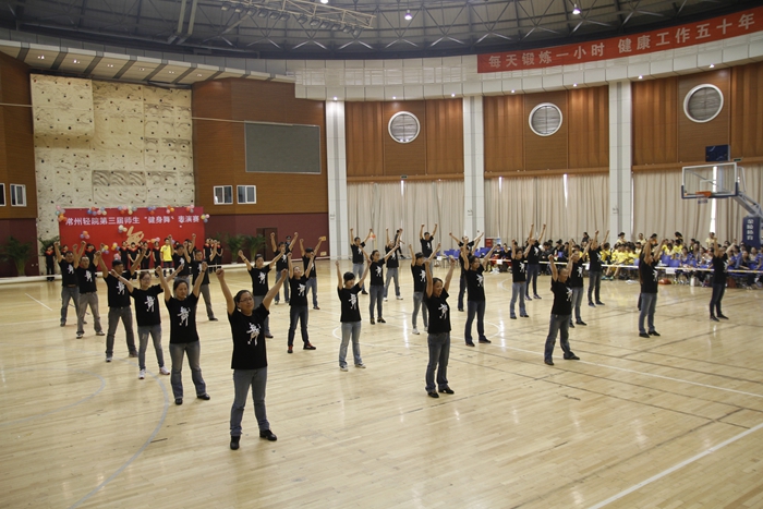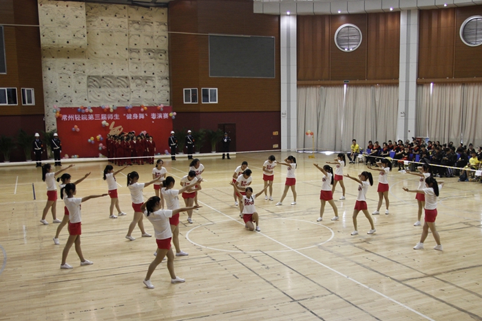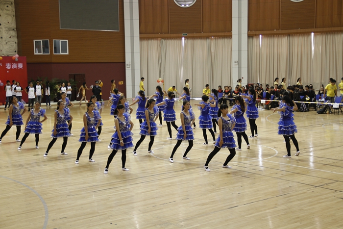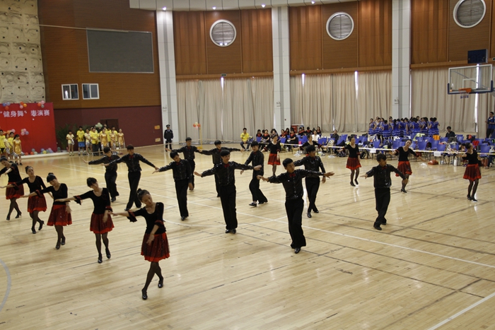 大赛的开场以一曲《欢乐一起来》的开场舞展开,全体参赛师生在热烈欢快的音乐声中共同舞动手中的花球,激情拉开帷幕。开场舞之后,学院的各个代表队分别展示了自己精心编排的健身舞,风格各异,尽显风采。艺术系师生表演的《魔力火车》第一个出场,整齐轻盈的舞步伴着时尚摩登的音乐,给观众带来独特的异域风情;信息系代表队的小清新舞蹈《一万个舍不得》,师生一起带给观众耳目一新的清凉之风 ;机械系代表队的《舞动中国》气势宏大,振奋人心;机关一、机关二、基础部、体育部联队教师表演的踢踏舞《舞曲串烧》, 全部由教职工上场表演,阵容强大,风格多变,带动了全场气氛,赢来了现场观众的阵阵掌声与呐喊声;模具系师生穿着华丽的服饰,激情演绎了《今夜舞起来》,带给我们别样的视听感受;而电子系师生带来的《华尔兹圆舞曲》,又仿佛带着观众走进了多瑙河畔的维也纳;轻工系师生带来热闹的《跳到北京》和管理系师生带来的《寒冷因素》风格各异,给观众不一样的视觉享受;旅游系师生不仅让观众欣赏到神曲《小苹果》的魅力更是加入了服务行业的专业礼仪手势表演,让观众感受到了对于专业知识的学习的重要性。师生们在舞蹈中舞出了活力,舞出了健康,舞出了激情,最后大赛在全体师生表演的《永远的朋友》中圆满落幕。