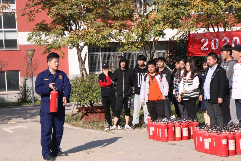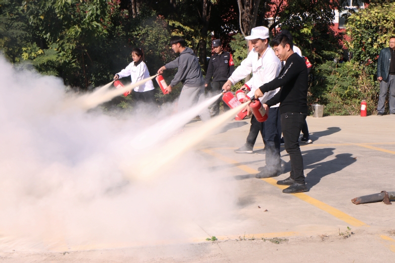 学工处、保卫处处长柏铁山强调了消防救援的重要性和必要性,徐涛详细讲解了灭火器的灭火原理和使用方法,并作操作演示。