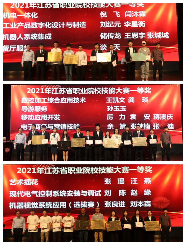 吴丽云宣读了《关于表彰2020年全国职业院校技能大赛改革试点赛、2021年江苏省职业院校技能大赛获奖团队的决定》。施新平解读了“建军杯”学生技能竞赛节总体方案。学校领导为获奖团队颁发了奖牌和荣誉证书。