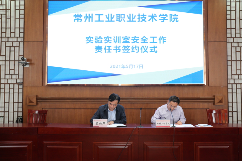 杨劲松代表学校分别与二级学院院长签订了《常州工业职业技术学院实验实训室安全责任书》。