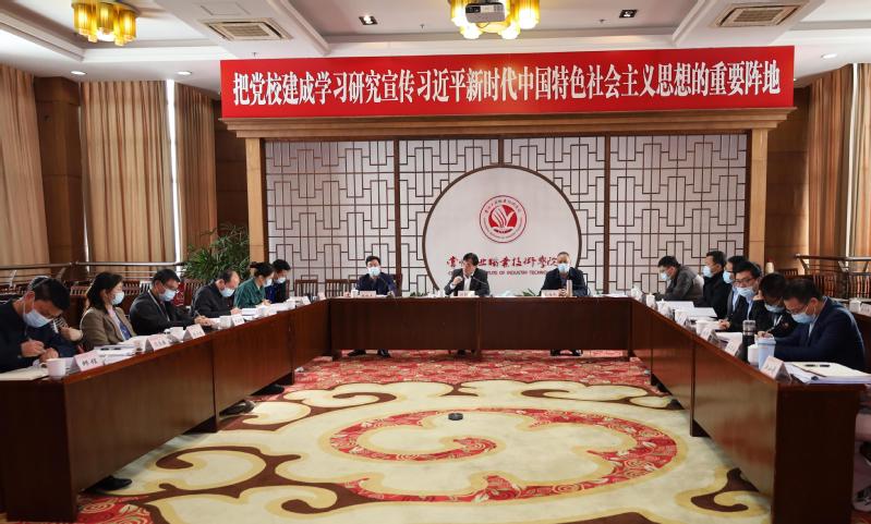 檀祝平汇报了近年来学校“三全育人”综合改革推进情况,并详细解读了“三全育人”的相关文件。(审稿/檀祝平、邱程、李颖)