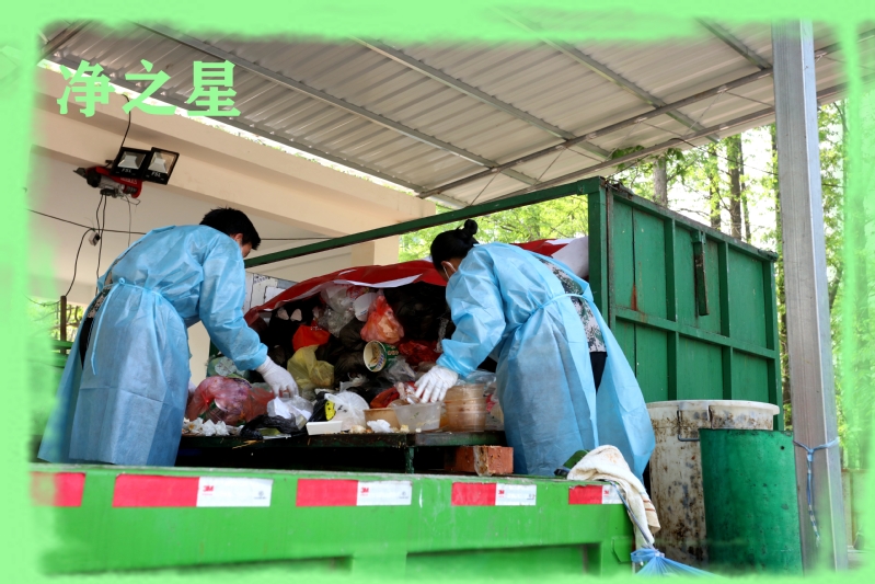 封校防控期间,学生公寓区产生的垃圾逐日递增。不断来回拉车,每日垃圾分类处理……对于校园垃圾站的工作人员来说,是对身体和精神的双重考验。出入恶臭的垃圾堆,用双手对垃圾清理、分类,他们的衣服也许沾满了污渍,但是他们心灵之美,却装点了整洁的校园。汗水与尘土衬托的,是那一个个质朴的灵魂。他们是校园里的一颗颗“净之星”。