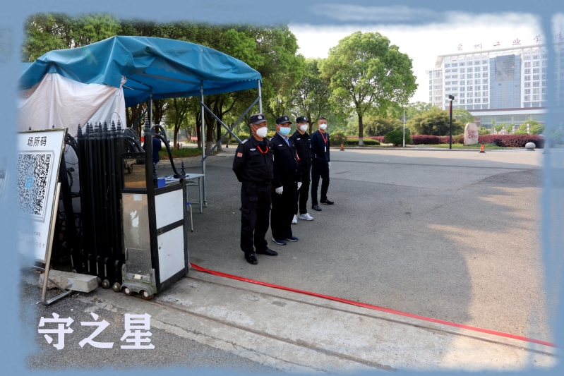 天刚破晓,同学们或许还未从睡梦中苏醒,但清晨的阳光下却立着一个个笔挺的身影。他们轮流值守着学校最关键的卡口,不敢在这关键时刻有一丝一毫懈怠。“保安”两个字虽然简单,几笔便能书写,但是,保证全校学生的安全并不是一件简单的事情。检查“两码”,测量体温,将闸门一遍遍开启、关闭……尽心尽职是他们最为真实的写照。他们是校园里的一颗颗“守之星”。