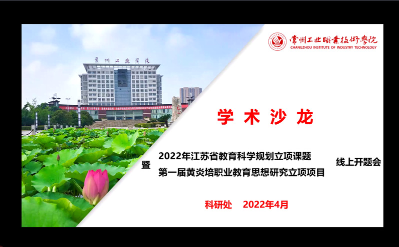 本次活动以2022年立项课题开题汇报为契机,主要涵盖江苏省教育科学“十四五”规划课题和第一届黄炎培职业教育思想研究14项优秀立项课题。这既是对课题组项目研究方向和内容、研究计划和进度的展示和检验,也是一次面向学校教师介绍新时代职业教育政策走向、职教研究热点切入点以及目前我校教学改革重点难点的学术交流学习会议。100多位教师全程在线聆听开题汇报,学习优秀立项课题的前沿研究理论和先进研究方法,与会人员都受益匪浅。
