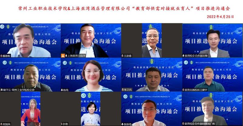 学校校企合作处、旅游与烹饪学院相关负责人以及合作专业带头人,上海亚湾酒店管理有限公司相关负责人参加视频会议。(审稿/檀祝平、王迎春、邱程、李颖)