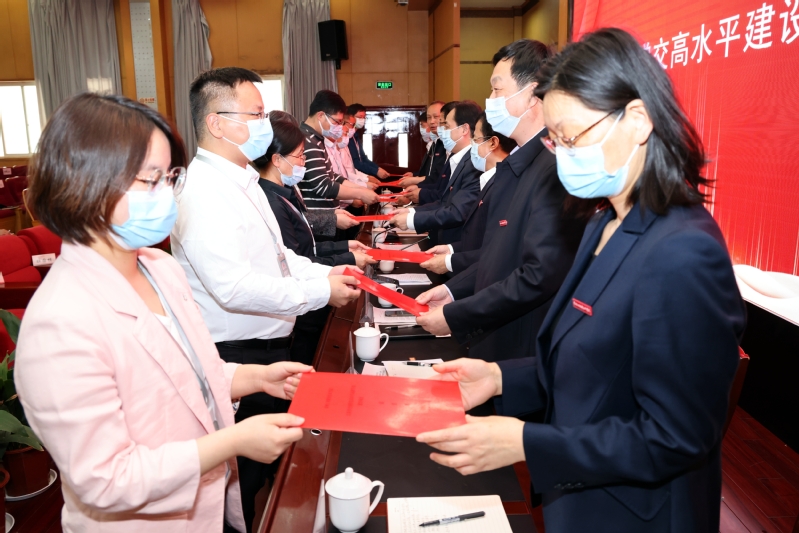 现代装备制造学院院长潘安霞、经贸管理学院院长孙洁、智能控制学院党总支书记冯庆媛代表先进单位交流发言。教师工作部等9个单位代表全校各部门、各二级学院现场递交了高水平建设责任书。教务处处长徐伟、智能控制学院院长蒋正炎代表全校各部门、各二级学院作高水平建设表态发言。